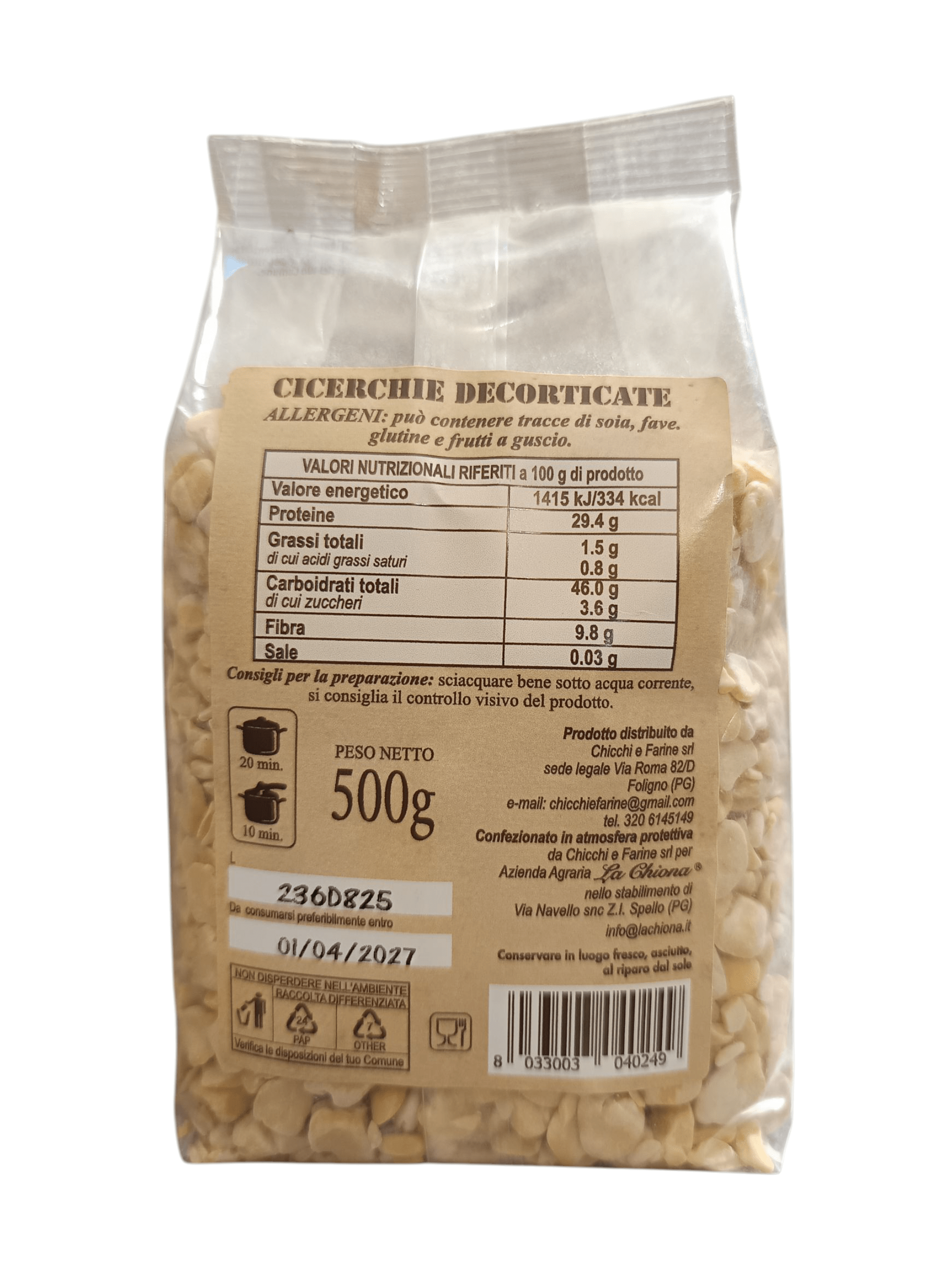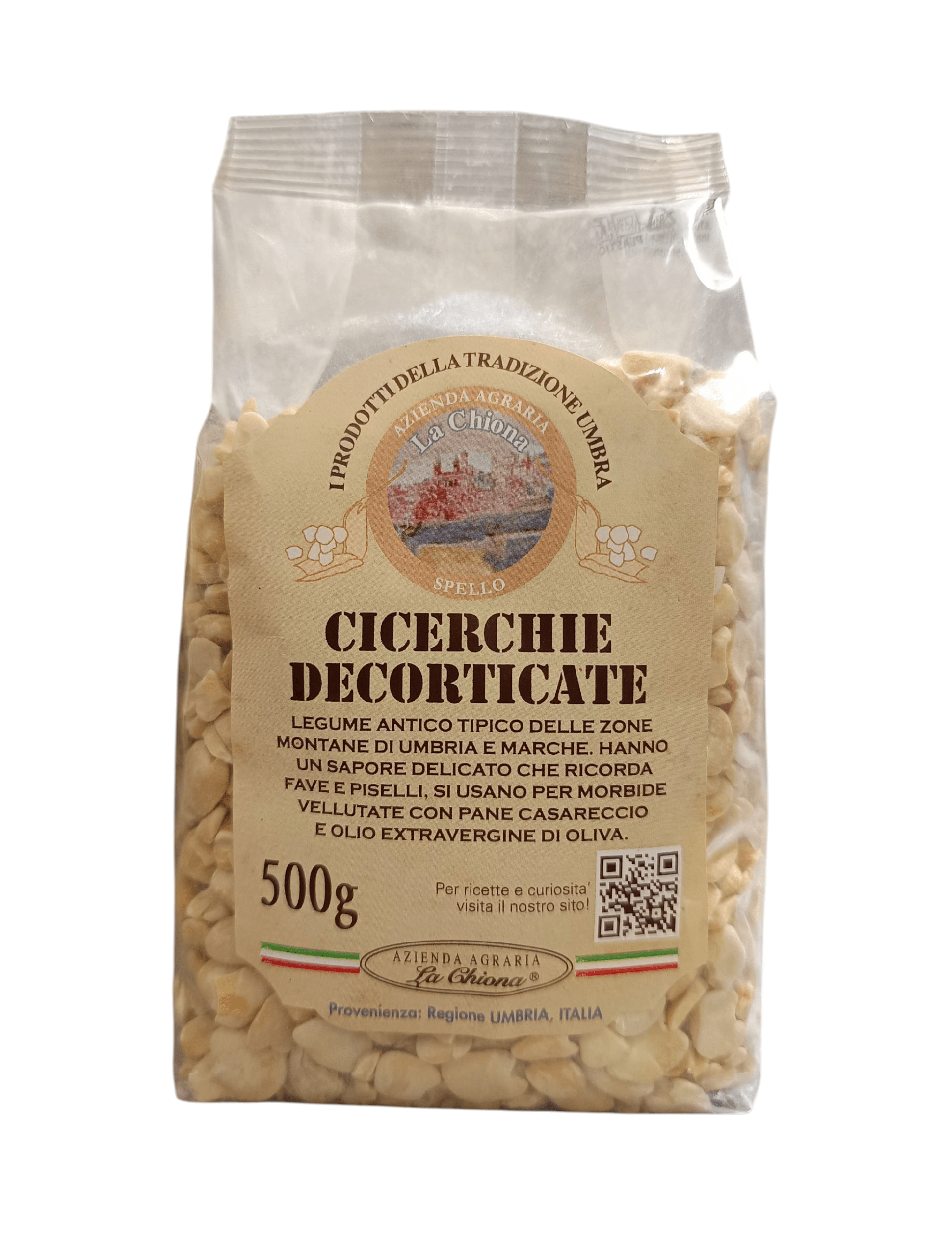 La rimozione della buccia tramite il procedimento della decorticatura facilita naturalmente il processo di cottura e rende le Cicerchie ideali per la preparazione di zuppe e di gustose creme.