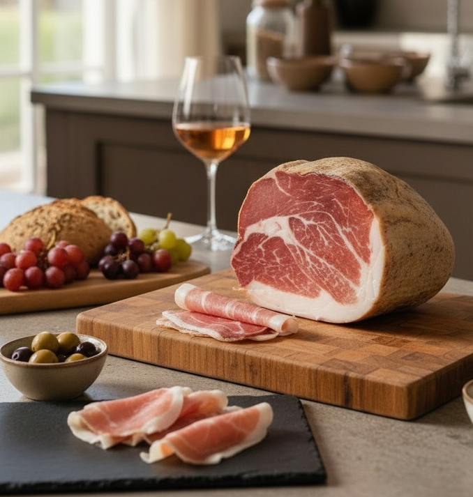 La Culatta di Assisi è un salume pregiato della tradizione umbra, ottenuto dalla parte più nobile della coscia di suino e lavorato secondo metodi artigianali. Dopo una lenta stagionatura, sviluppa un gusto dolce e delicato, con profumi eleganti e una consistenza morbida che si scioglie al palato.